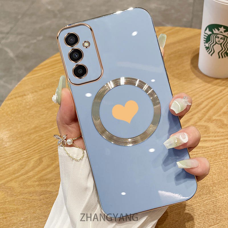 Estojo Para Telefone Samsung A15 4G A55 5G TPU De silicone Galvanizado Com Simples Macio De Sucção Magnética E Lente ant