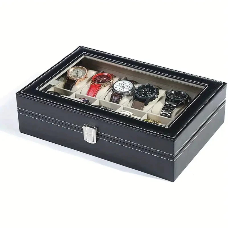 O organizador de relógios tem até 12 relógios, mantém seus relógios, joias e roupas organizadas e protegidas adequadamente. O Forro Organizador É Confeccionado Em Couro Sintético Altamente Durável, Fácil-To-Clean.Acolchoamento Macio Dentro Para Proteger Efetivamente Seu Relógio E Acessórios. O suporte de exibição em acrílico permite visualizar itens sem abertura. O fecho de metal garante proteção e estilo. Instruções de cuidados: Camada de superfície.- Por favor, Use um pano seco macio para limpar para proteger A camada de superfície. Evite contato direto com água ou produtos de moagem. Leve do sol direto.- Por favor, armazene em local seco e seco. Descrição do Produto: Espuma revestida de couro sintético/acrílico/revestida Peso: 723 G Cor preta Capacidade de compartimentos Tamanho da caixa: Cerca de 20 cm x 25 cm x 7,5 cm x 7,5 cm Itens Inclusos: Caixa de Armazenamento com Compartimento para Caixa de Armazenamento com Almofada de Compartimento