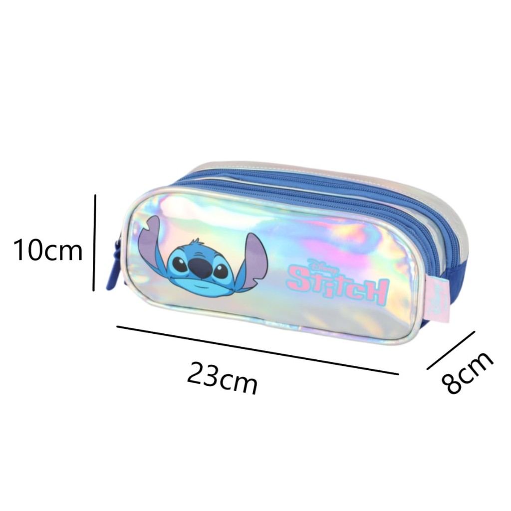 Estojo Stitch Infantil Feminino Prata Estampa 3 Repartições