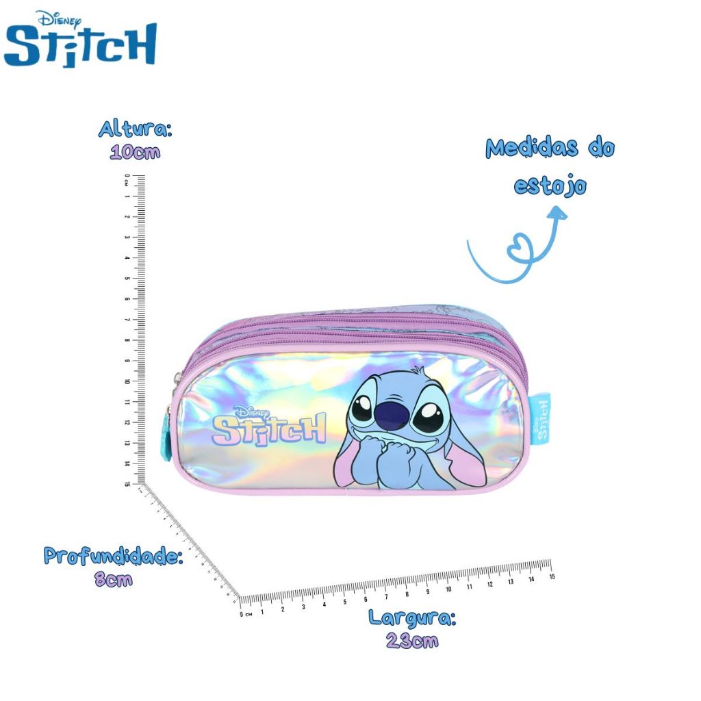 Estojo Triplo Stitch Holografico Meninas Escolar Infantil