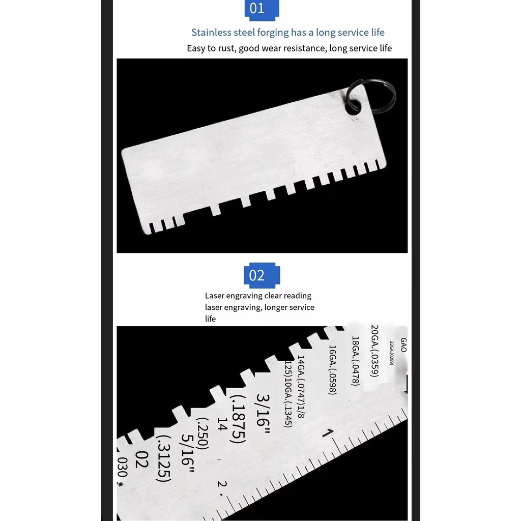 Aviso de pré-compra: Há compradores e amigos que refletem a sensação de atomização da fonte. Traço deixado pelo processo de produção e processamento que não afeta o uso. A fonte ainda é claramente visível como um todo. Se você se importa com os amigos, não atire! [Nome Da mercadoria]: medidor de espessura [material da mercadoria]: Aço inoxidável Faixa de mercadoria] [Faixa de mercadoria]: 0,0239 - 0,035 Quantidade Total do produto]: 12g [Processo De escala]: Escala a Laser Espessura da mercadoria]: 0,87 mm [Características Da mercadoria]: 1.feito de aço inoxidável, após o processamento múltiplo, design engrossar, não é fácil de deformar e durável. Os 2.tamanho e números são gravados na superfície para clareza e leitura fácil e resistência ao desgaste estável. A medição rápida e precisa da espessura da soldagem. Peso leve e fácil de transportar. Adequado para]: Solda ou Verifique o tamanho do fio da folha de Metal antes de trabalhar ** Os dados acima são todos medidos à mão, pode haver um erro de 1-3mm; é normal que diferentes lotes tenham uma pequena diferença.