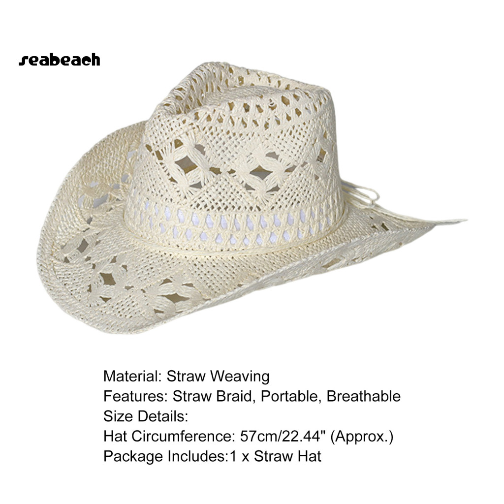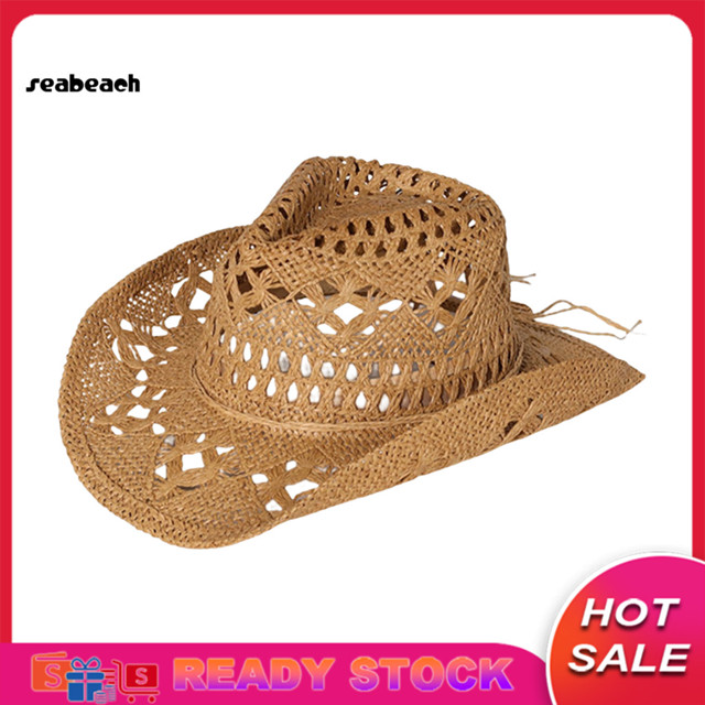 [Estoque Pronto] Chapéu De Palha Ventilado Oco Redondo Dobrável Praia De Cowboy Ocidental Adereços Fotográficos