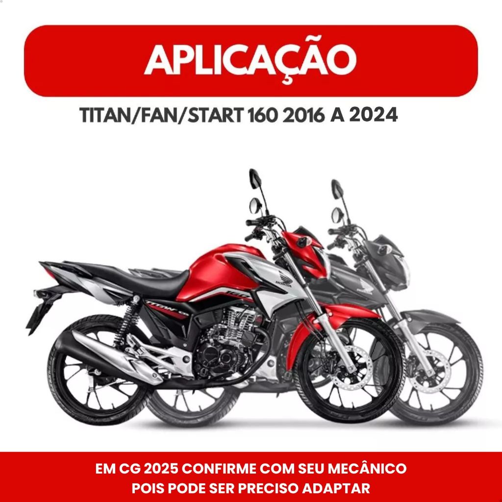ESCAPAMENTO ESTRALADOR POLIMET MODELO TURUNA + PROTETOR DE ESCAPE + Kit instalação(SALVO DISPONIBILIDADE DE ESTOQUE) CÓDIGO:KIT_18596 APLICAÇÃO NOS MODELOS: HONDA CG TITAN 160 HONDA CG FAN 160 HONDA CG START 160 TODOS OS ANOS E MODELOS ATÉ 2024 Em Cg 2025 confirme com seu mecânico pois pode ser preciso adaptar. INMETRO: 000346/2025 MODELO DE ENCAIXE: COM SUPORTE PARA MOTO COM BACALHAU!!! !!!!!!!!!!!!!!! Acompanha kit instalação composto por anel de escape, coxim protetor e parafusos (SALVO DISPONIBILIDADE DE ESTOQUE). !!!!!!!!!!!!!!! O escapamento é uma peça responsável por eliminar os gases do motor. Dependendo do modelo, a intensidade do som gerado por esse processo pode aumentar ou diminuir. O protetor de escape é fundamental para proteger o escapamento contra danos causados por possíveis acidentes ou colisões, quedas ou detritos das estradas, preservando a vida útil de sua motocicleta, garantindo a integridade do sistema de escape. SOBRE O FABRICANTE: Para superar as expectativas de seus clientes, a missão da POLIMET é ultrapassar seus próprios limites. A qualidade e eficiência de seus produtos são resultados do apoio e confiança de seus parceiros comerciais, que juntos, trabalham para que torne-se referência como empresa genuinamente brasileira em seu segmento. !!!!!!!!!!!!!!! IMAGENS MERAMENTE ILUSTRATIVAS !!!!!!!!!!!!!!! Produzido com os melhores equipamentos, garantindo segurança e durabilidade. Oferecendo sempre o melhor custo benefício, unindo qualidade e eficiência na sua utilidade. SOBRE NOSSA EMPRESA: Somos uma organização com anos de experiência no mercado. Seja você um apaixonado por velocidade, um aventureiro de estrada ou um entusiasta da personalização, cumprimos a missão de fornecer peças e acessórios da mais alta qualidade para elevar sua experiência de pilotagem a um novo patamar. UTILIZE O CAMPO DE PERGUNTAS PARA TIRAR SUAS DÚVIDAS, e apenas confirme a compra em caso de CERTEZA de compatibilidade do produto!
