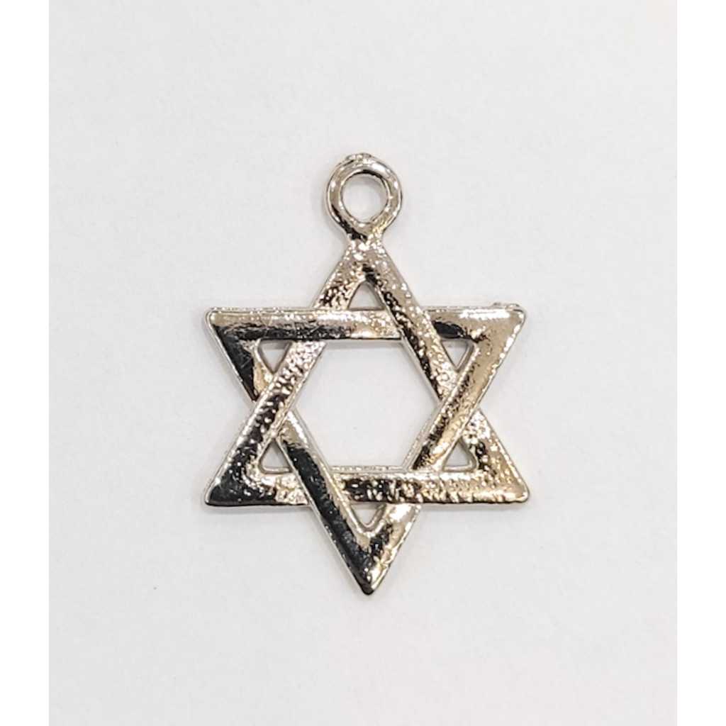 Nome : Estrela 6 pontas. Quantidade : 1 peça e 5 peças Cor : Níquel, dourada Material : Metal Tamanho pequeno : 1.7 x 1.2 cm Tamanho Médio : 2.5 x 1.7 cm Tamanho grande : 3.5 x 2.5 cm Obs. : Nem todos os pingentes acompanham argola, pois podem variar de acordo com o lote e fábrica.