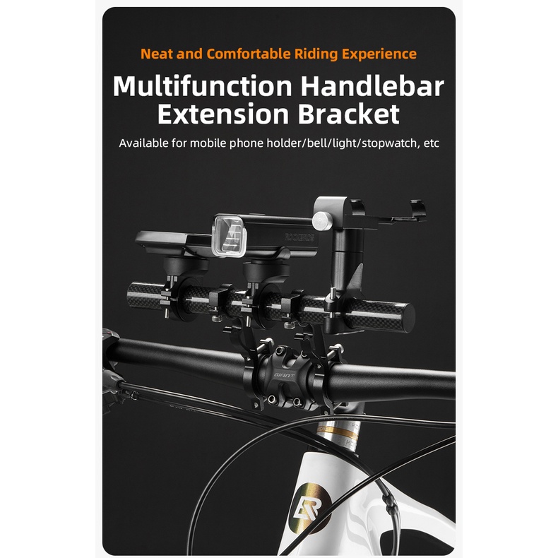 Marca: ROCKBROS Nome do produto: Suporte de extensão de grão de carbono de bicicleta Material do material: liga de alumínio/fibra de carbono Peso: 140 g Cor da Caixa:Preto Diâmetro disponível: 20-32 mm Característica:multi-função/guidão de extensão 1.Disponível para suporte para celular/sino/luz/stopwatch/alto-falante, etc. 2.Suporte duplo fixo e constante. 3.Instalação firme e firme com junta antiderrapante. 4.Liga de alumínio e fibra de carbono.