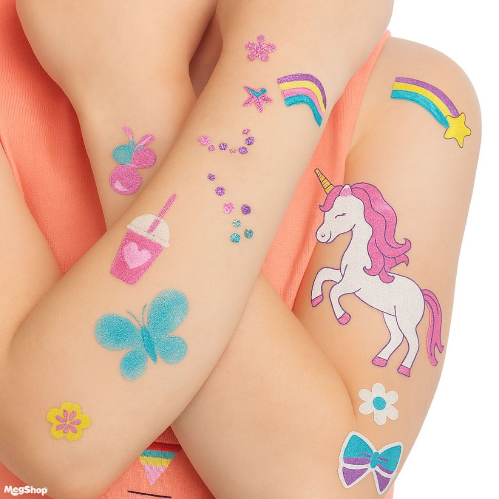 Estudio de caneta glitter de tatuagem temporaria divertida infantil adesivos estenceis