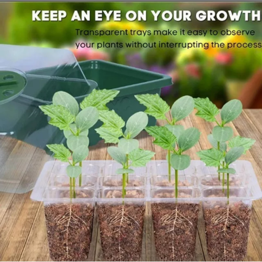 Cabine de germinação propagador com bandeja de 12 células para semear, rotular e distinguir espécies de plantas e mudas de transplante. Os propagadores para plantas são especialmente projetados para armazenar inúmeras sementes que começam na fase de germinação até que estejam prontas para o transplante. O uso das bandejas ajuda a garantir que cada semente receba seus nutrientes e também dispensa a necessidade de vários plantios. Recomendável também para clones em processo de enraizamento. Temperatura e umidade ajustáveis: A abertura ajustável permite regular a temperatura e a umidade das bandejas de mudas. A cúpula de controle de umidade mantém as mudas úmidas e reduz a evaporação da água, proporcionando condições ideais para uma germinação mais rápida das sementes. O fundo da bandeja possui orifícios de drenagem para evitar que as raízes morram devido ao excesso de água. Acompanha bandeja com 12 células, porta bandeja e cúpula com abertura ajustável. Dimensões da cabine: 18x14x11cm