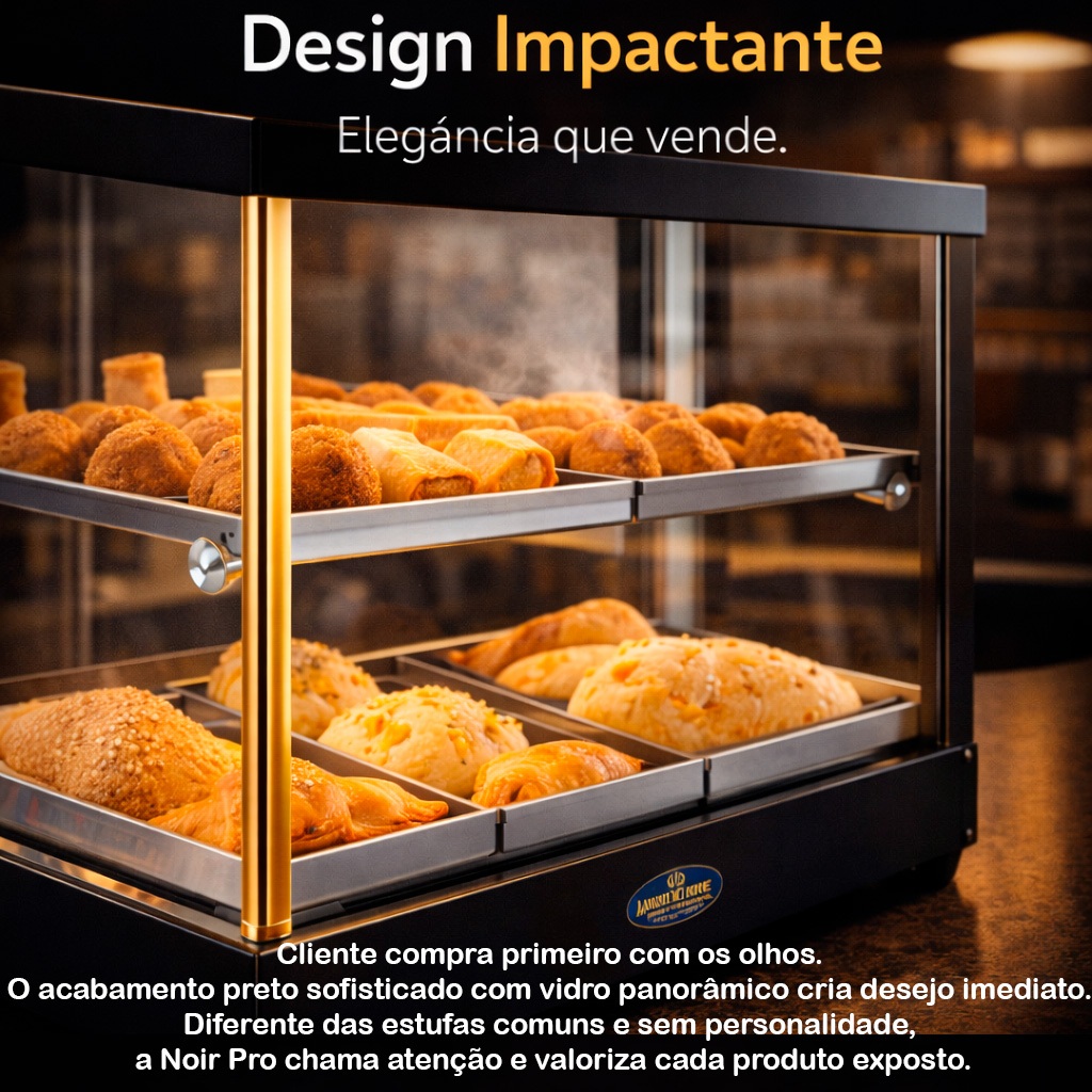 Estufa Vitrine Aquecida Para Salgados Retilínea Black 6 Bandejas Duplas 220v ou 127V