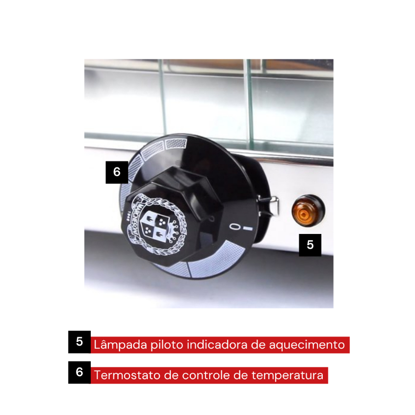 Estufa Ouro, a queridinha das padarias, bares e lanchonetes! As estufas Ouro Marchesoni oferecem excelente custo-benefício e são perfeitas para expor produtos com elegância, mantendo-os aquecidos. Feitas em aço inox, com frisos dourados e vidros temperados, elas valorizam a apresentação dos itens, impulsionando as vendas. - Fabricadas em aço inox; - Frisos dourados; - Vidros temperados; - Termostato de temperatura automático; - Lâmpada piloto indicadora de aquecimento; - Umidificador que evita o ressecamento dos alimentos. Características Técnicas: Bandejas: 6 bandejas duplas Dimensões (C x L x A) Embalagem: 45 x 38 x 41 (cm) Dimensões (C x L x A) Produto: 44 x 36 x 37 (cm) Consumo: 250W / 0,25kw/h Alimentação: 127V / 220V Peso líquido/bruto: 8,6 kg / 9,5 kg