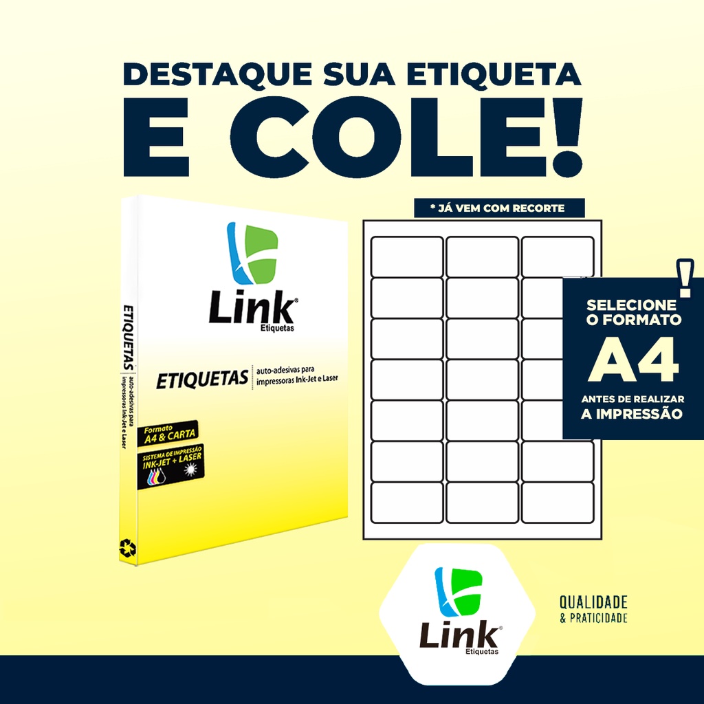 Etiqueta Adesiva A4 63,5mm x 38,1mm 100 Folhas - Link Etiquetas