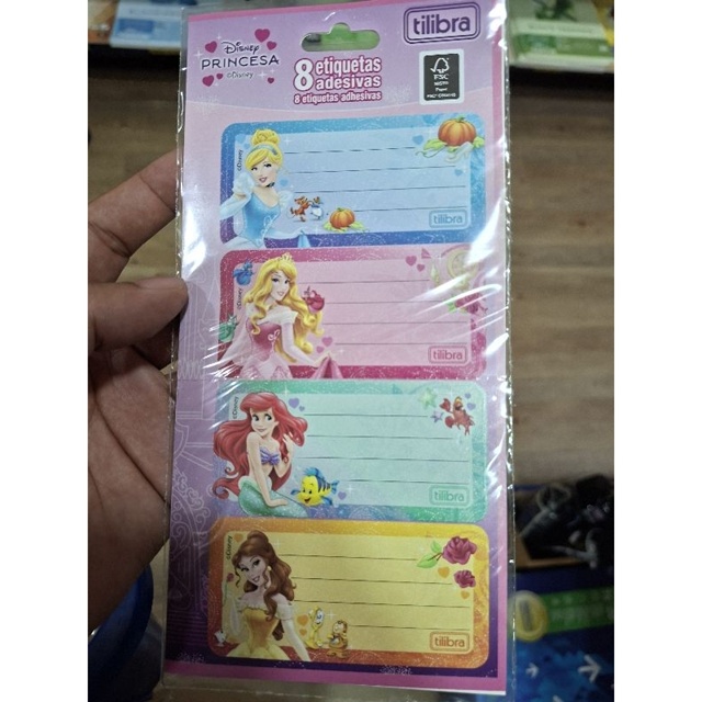 etiqueta adesiva escolar Princesas Disney antigo integra a oferta da Shopee Brasil na subcategoria Etiquetas e Adesivos (de Papelaria) por R$ 25,00.