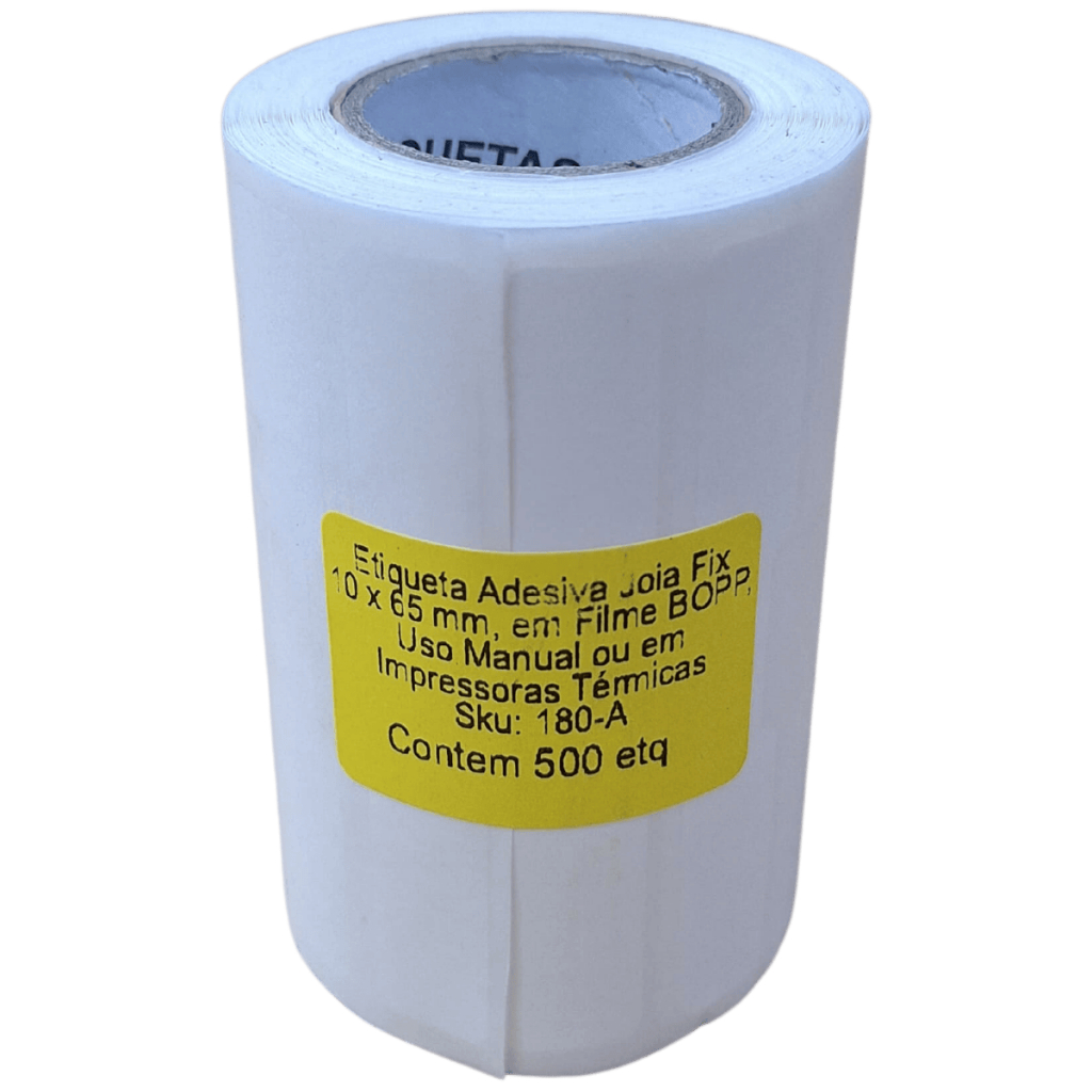 Etiqueta Adesiva para Jóia Bijuteria Fix 10x65 mm em Filme BOPP Uso Manual ou Impressoras Térmicas Rolo C/500 Etiquetas