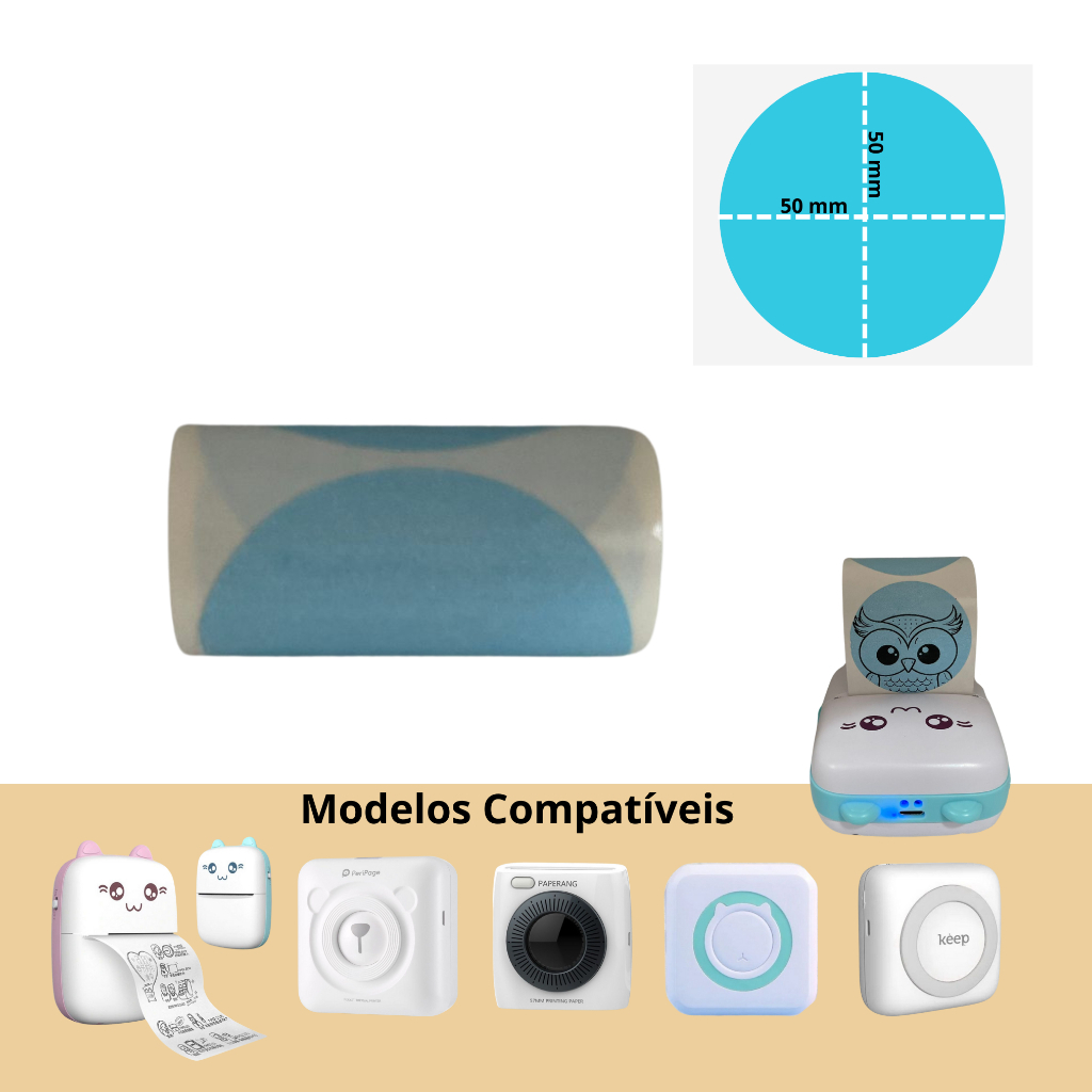 4 Rolos de Etiquetas Adesivas Térmicas Redondas 50mmx50mm (5cm) para Impressora de Gatinho (2 Rolos Azuis e 2 Rolos Rosas) CARACTERÍSTICAS DO PRODUTO - Alta qualidade - Largura: 50mm - Altura: 50mm - Comprimento: 3m - Quantidade de Etiquetas: 55 etiquetas por Rolo - Produto: Novo - Cor do Papel: Rosa & Azul -Quantidade Rolos: 4 Rolos (2 Rolos azuis e 2 Rolos Rosas) -Impressão térmica direta (Dispensa o uso de Ribbons)