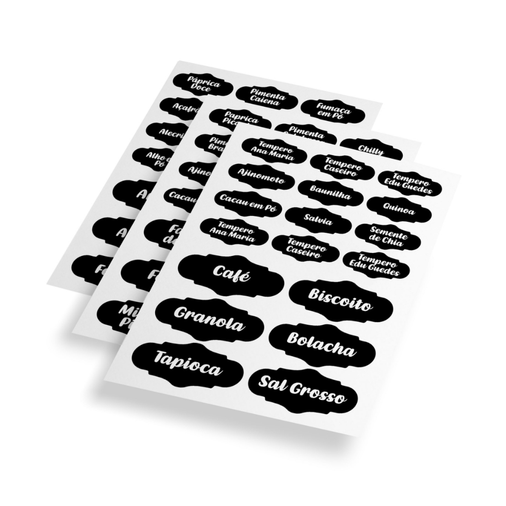 Etiqueta Adesiva Para Potes De Tempero Grãos Condimentos Cor Preto - 60 Etiquetas