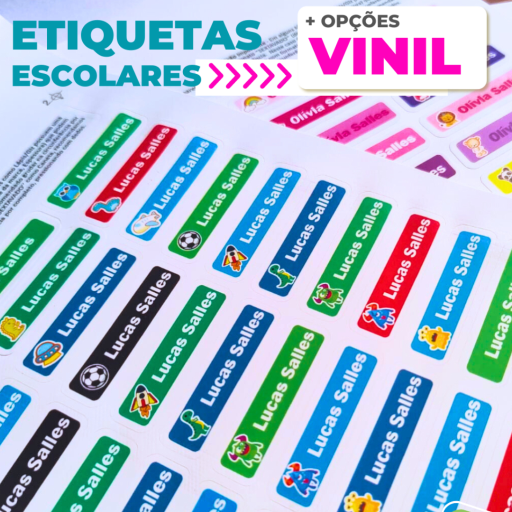 Etiqueta Escolar Adesivo Vinil para Materiais Escolares, Mamadeira, Copos a partir 60 Unidades