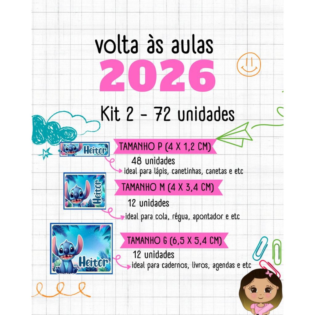 Etiqueta Escolar Personalizada – Organização, praticidade e identificação perfeita para o dia a dia escolar Nossas etiquetas escolares personalizadas são ideais para identificar materiais escolares como cadernos, livros, estojos, lápis, canetas, canetinhas e muito mais. Produzidas com material de alta qualidade, possuem excelente fixação e impressão nítida. FAZEMOS EM QUALQUER TEMA Trabalhamos com diversos temas infantis. Após a compra, informe pelo chat o tema e o nome para personalização. INFORMAÇÕES DO PRODUTO Material: Papel fotográfico adesivo Glossy 80g Impressão de alta qualidade, com cores vivas e acabamento brilhante Recorte eletrônico de precisão Ótima aderência em superfícies lisas NÃO LAMINAMOS ETIQUETAS! MEDIDAS APROXIMADAS Tamanho P: 1,2 x 4,0 cm Tamanho M: 3,4 x 4,0 cm Tamanho G: 5,4 x 6,5 cm (O envio segue conforme o modelo do kit anunciado) OPÇÕES DE KIT Kit com 39 etiquetas Kit com 72 etiquetas Kit com 112 etiquetas (Selecione a opção desejada no momento da compra) PERSONALIZAÇÃO Personalizamos com nome, série/ turma Os dados devem ser informados no chat após a compra Caso não sejam enviados em até 24 horas, o pedido será enviado SEM personalização REGRAS IMPORTANTES Arte igual à do anúncio, alterando apenas o nome Não alteramos o design SOMENTE 1 TEMAE NOME POR KIT NÃO DIVIDIMOS O KIT Não enviamos arte para aprovação Pequenas variações de cor podem ocorrer de acordo com a tela do celular ou computador PRAZO DE PRODUÇÃ Prazo de produção de até 5 dias úteis + prazo de entrega da Shopee DÚVIDAS? Fale com a gente pelo chat. Será um prazer te atender!