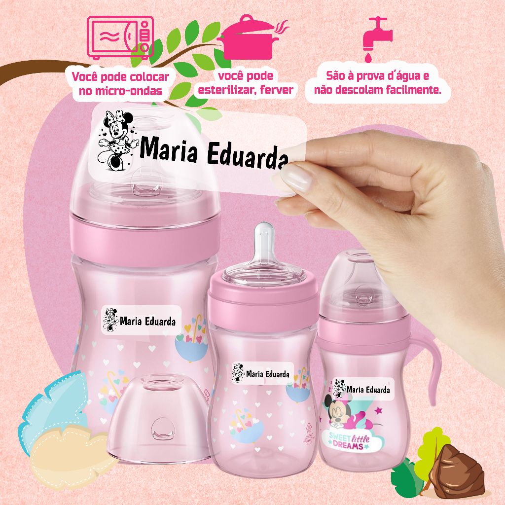 ETIQUETA DE VINIL TRANSPARENTE LEIA COM ATENÇÃO, TODAS AS ESPECIFICAÇÕES ESTÃO AQUI VENDEMOS APENAS OS ADESIVOS ( RESTANTE APENAS ILUSTRAÇÃO) Enviar via CHAT após a compra o nome a ser personalizado (CASO NÃO ENVIAR, SERÁ ENVIADO SOMENTE COM O DESENHO) Etiqueta Transparente 4x1,5cm Personalizada para Identificação de Material Infantil A prova d'agua! Serve para mamadeiras, chuquinhas, copinhos, escovas ou qualquer outro material rígido que queira identificar. !!! Não serve para tecido. !!! Etiqueta Transparente: Feita em vinil adesivo, a prova d'água com alta durabilidade Letras sempre Pretas Tamanho 4x1,5cm Cabe nome e 1 sobrenome ESCOLHER A VARIAÇÃO DE QUANTIDADE KIT COM 20 UND KT COM 40 UND KIT COM 60 UND KIT COM 80 UND