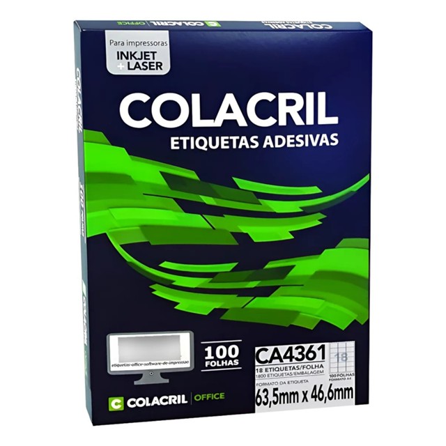Etiqueta Impressora A4 63,5 X 46,6MM 100 FLS CA4361 Colacril