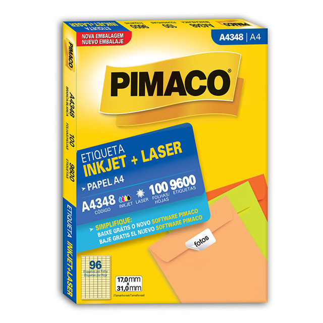 Etiqueta inkjet/laser A4348 com 100 folhas Pimaco