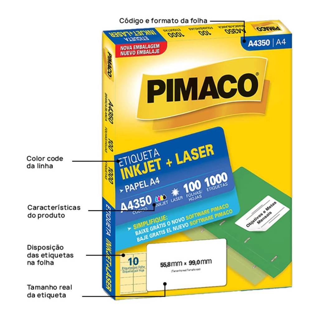 Etiqueta inkjet/laser A4350 com 100 folhas Pimaco