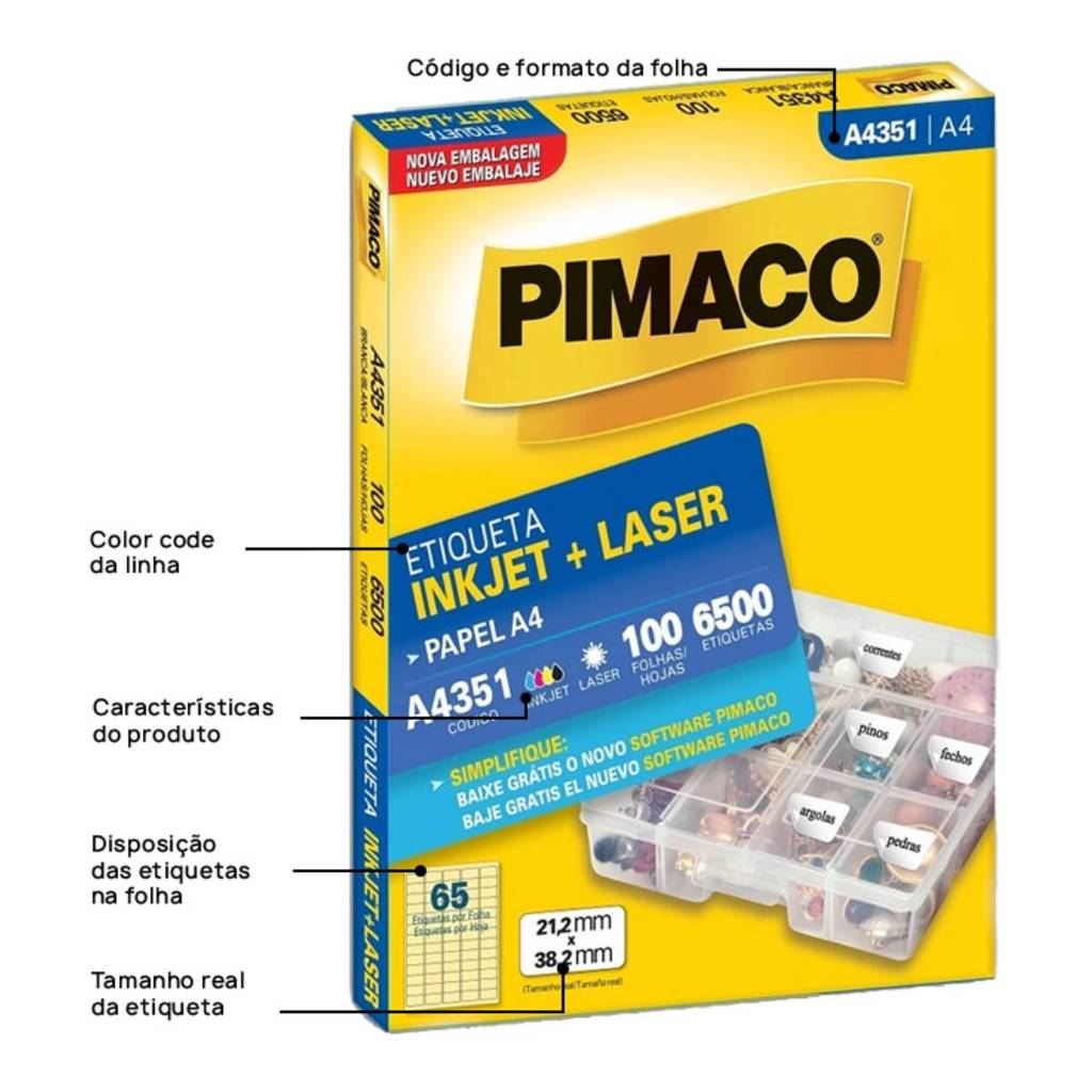 Etiqueta inkjet/laser A4351 com 100 folhas Pimaco