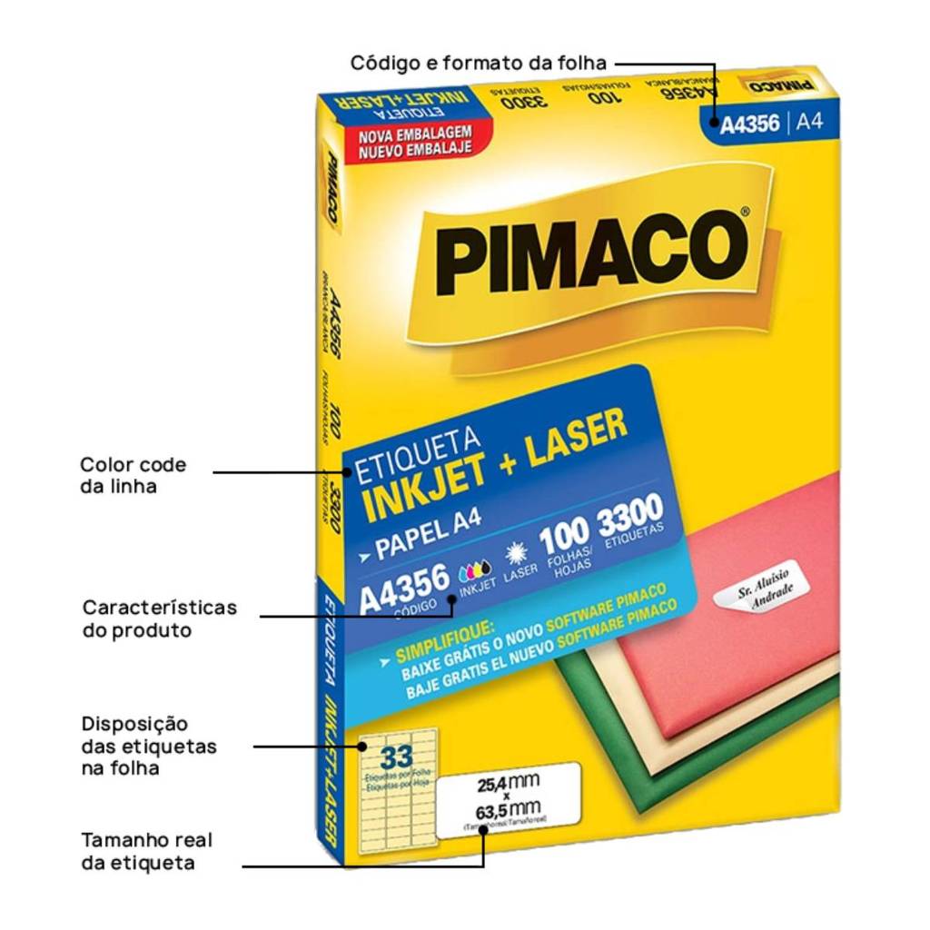 Etiqueta inkjet/laser A4356 com 100 folhas Pimaco