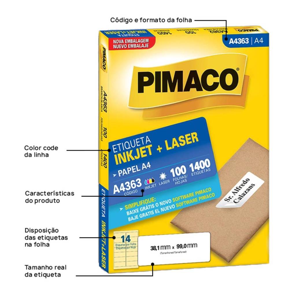 Etiqueta inkjet/laser A4363 com 100 folhas Pimaco