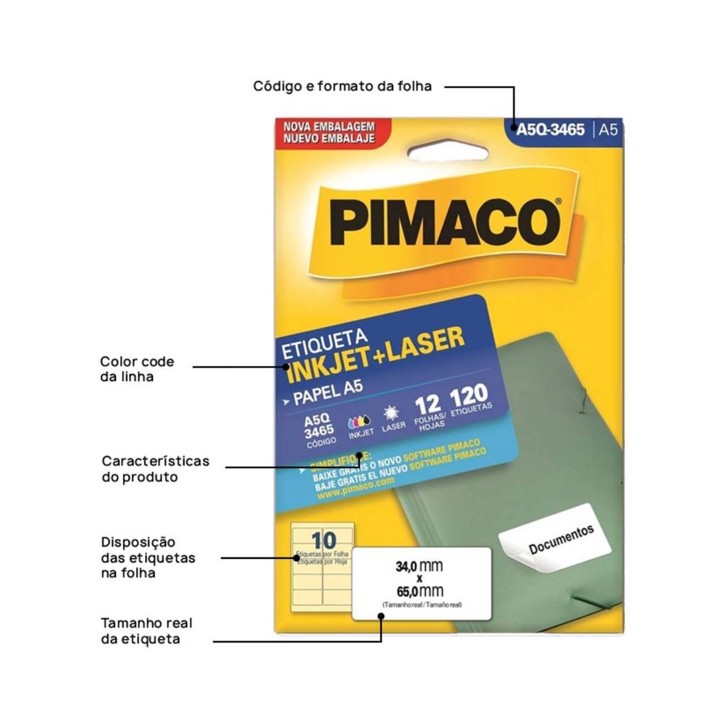 Etiqueta inkjet/laser A5Q3465 com 12 folhas Pimaco