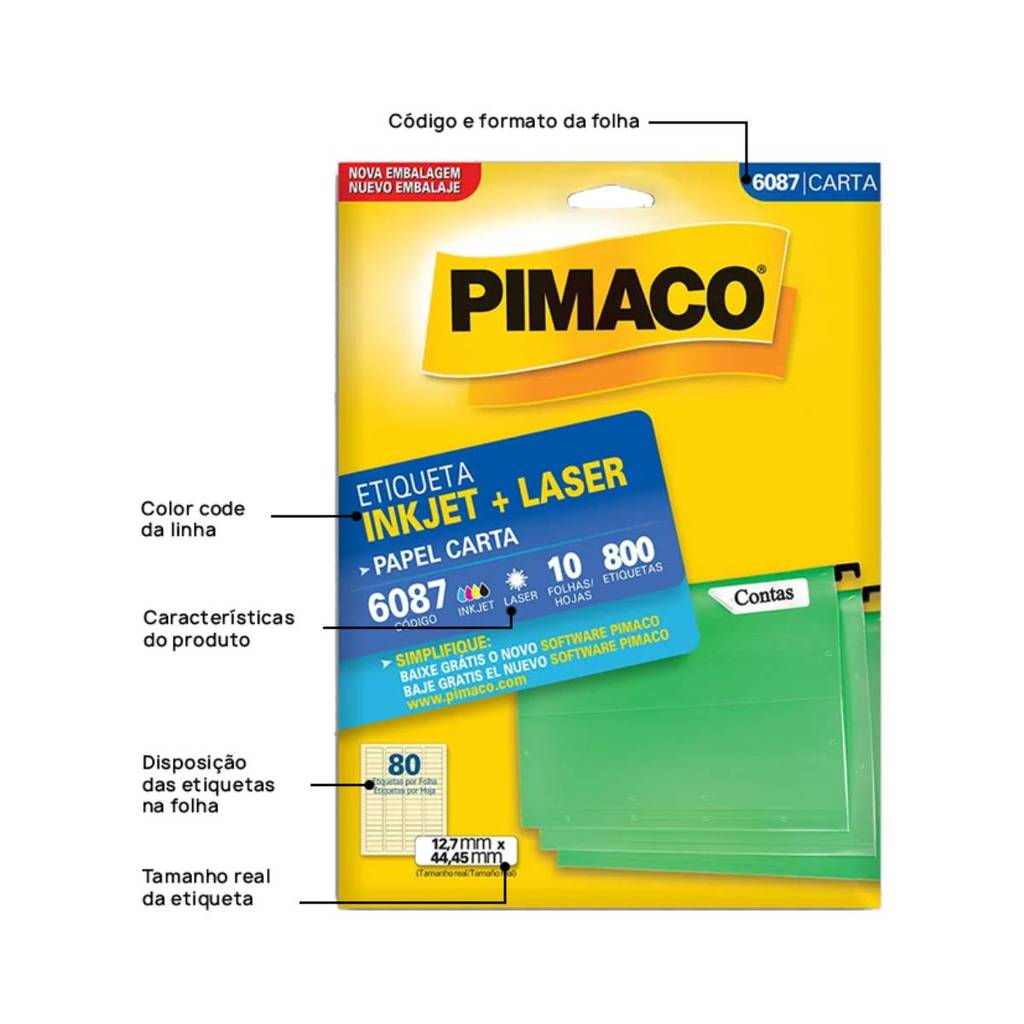 Etiqueta inkjet/laser carta 6087 com 10 folhas Pimaco