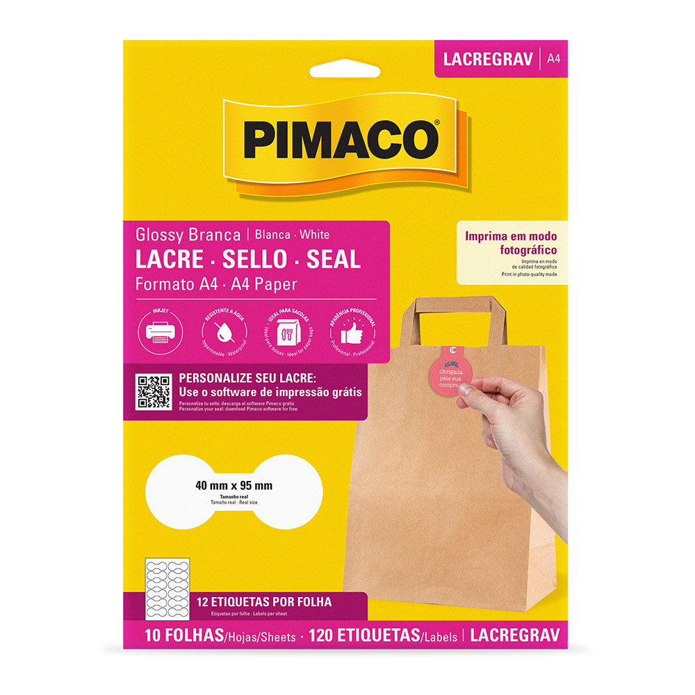 Etiqueta lacre glossy gravata A4 LACREGRAV com 10 folhas Pimaco