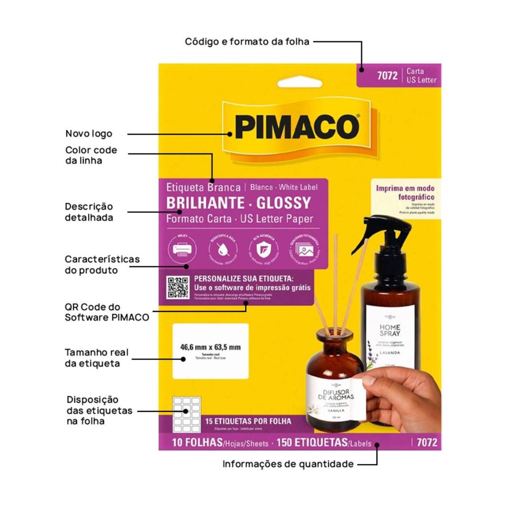 Etiqueta papel glossy 7072 com 10 folhas Pimaco