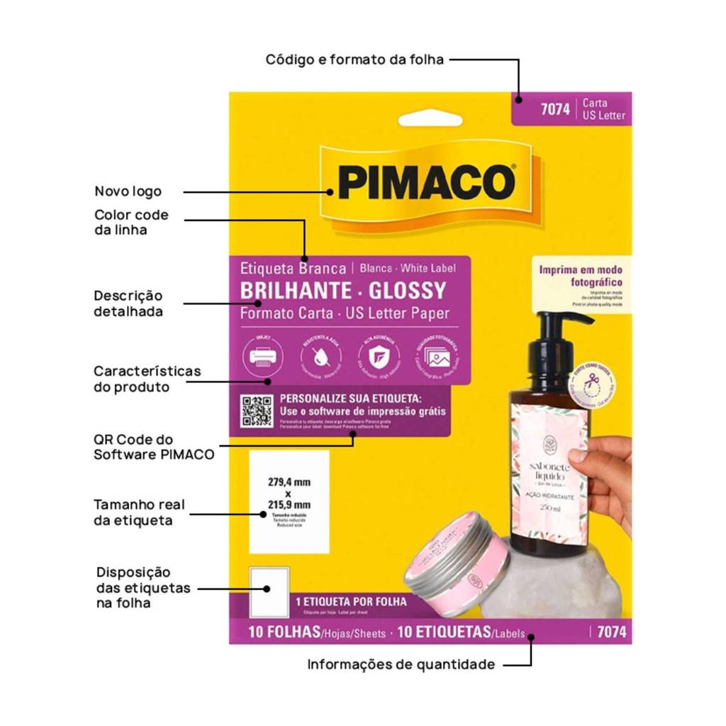 Etiqueta papel glossy 7074 com 10 folhas Pimaco
