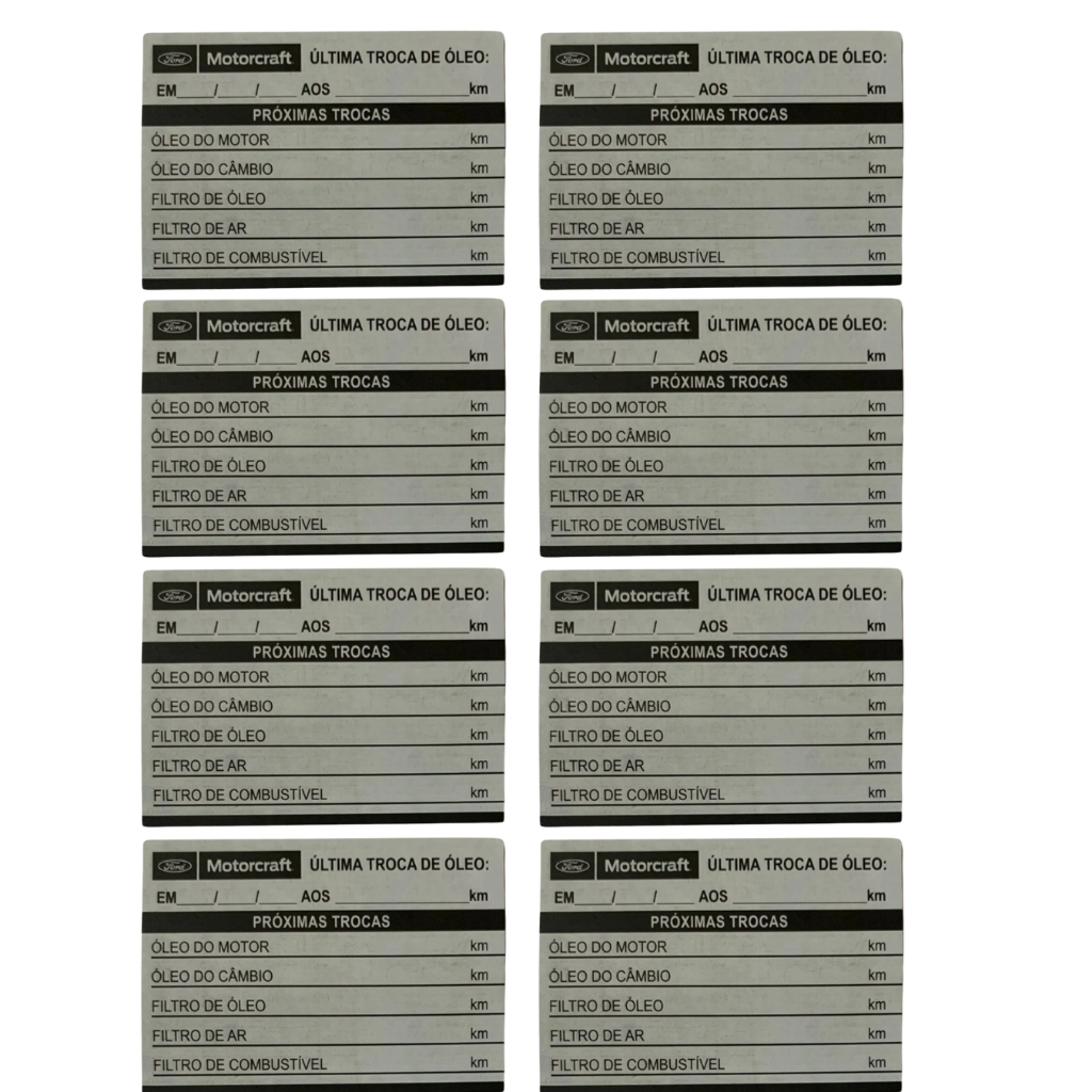 Etiqueta Quilometragem Troca De Óleo FORD Motorcraft 8 Unidades