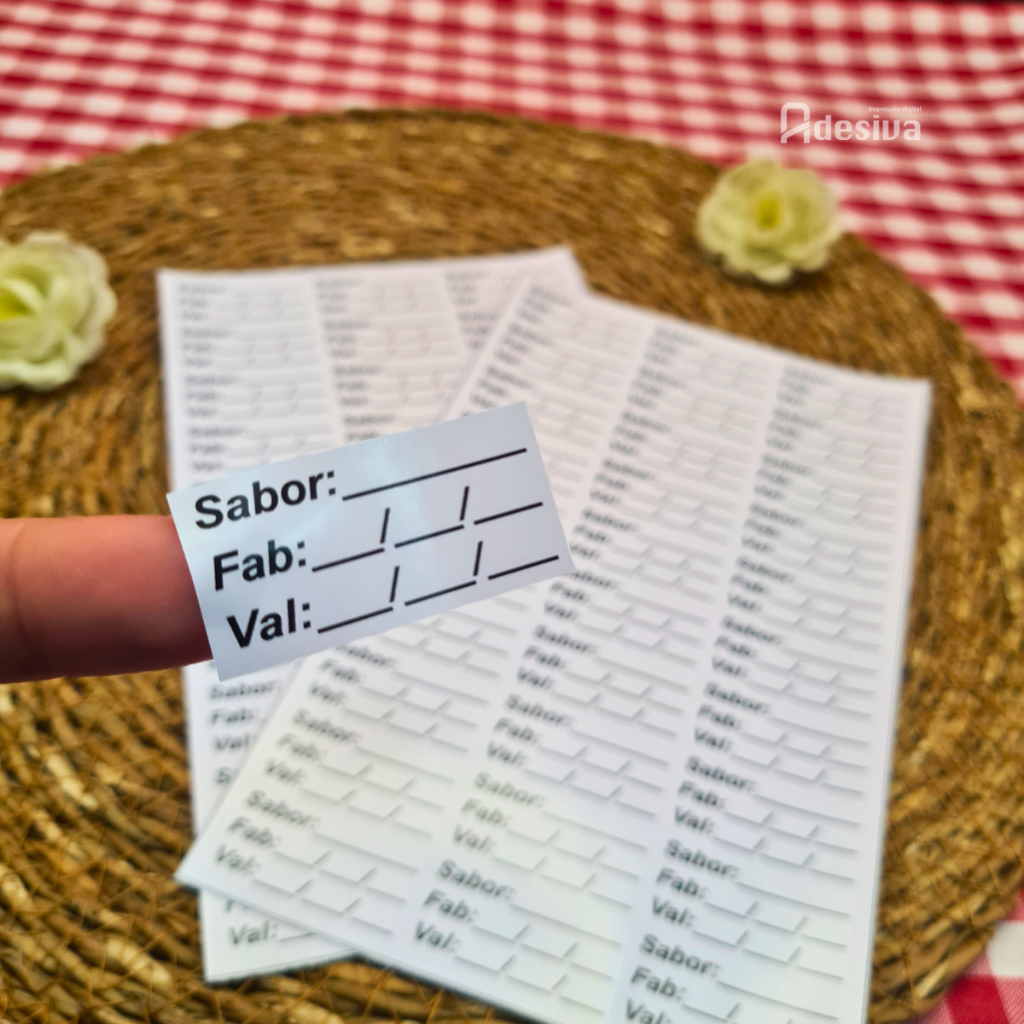 Etiqueta Vinil à Prova d’Água 4x2cm – Rótulo de Identificação Sabor, Fabricação e Validade para Doces e Bolos