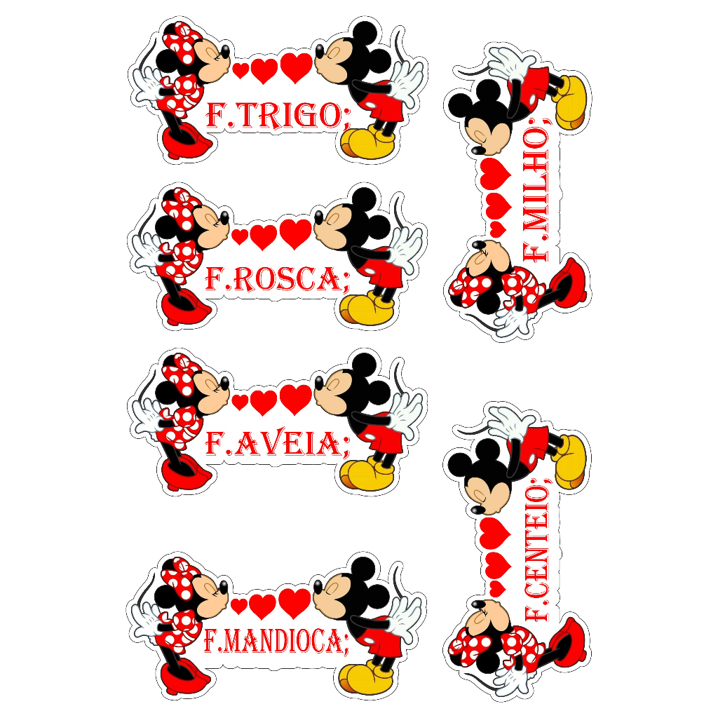 Etiquetas adesivas Minnie e Mickey Para potes de Mantimentos Á Prova D'água Temos á Pronta Entrega.