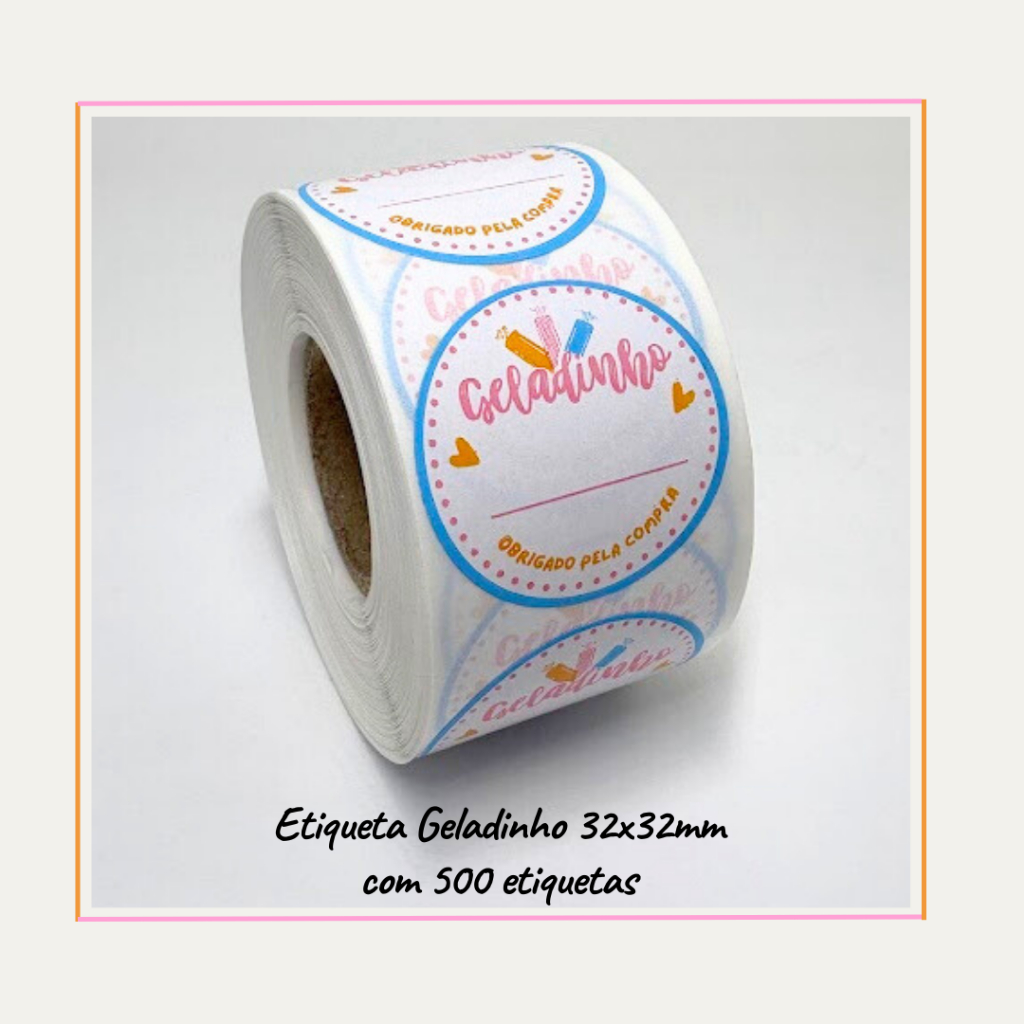 ***NÃO PERSONALIZAMOS*** Etiqueta Adesiva Geladinho Gourmet Ideal para personalizar suas encomendas. Especificações: Material: Couchê Adesivo Tamanho: 3,2 cm Redondo