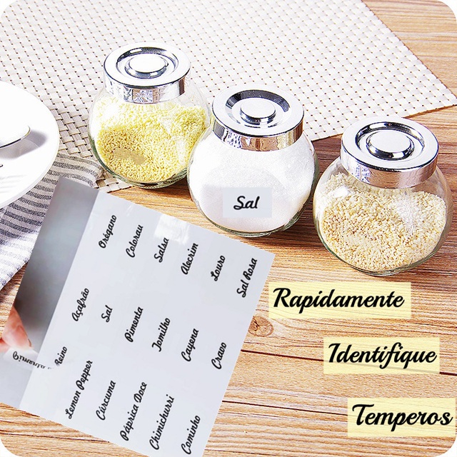 | Cartela de Etiquetas Adesivas Para Tempero Pote Organização Cozinha... | R$ 14,61 | 2% | 4.9/5 | 2 |
