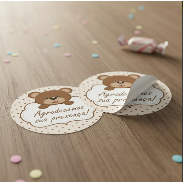 Etiquetas Redondo Maternidade Chá de Bebê Urso ursinho cor neutro