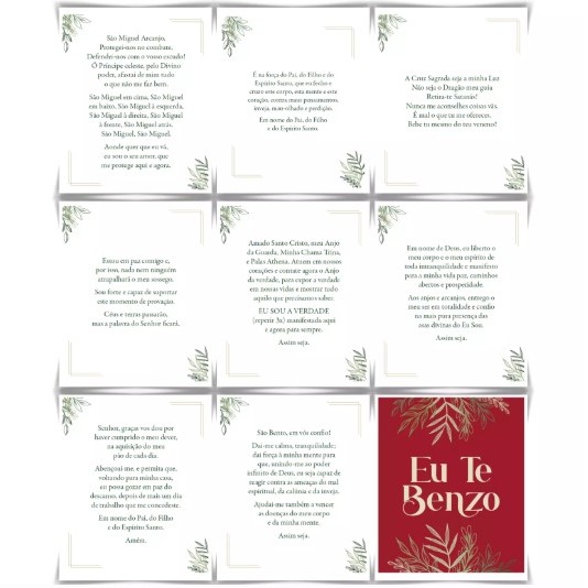 DESCRIÇÃO O Poder da Cura pela Fé em Suas Mãos Essa ferramenta incrível traz até você a essência dos antigos benzimentos e orações de cura em uma conjunto de 70 cartas poderosas. "Eu Te Benzo" é muito mais do que um simples oráculo – é um verdadeiro compêndio de sabedoria ancestral, carregado de fé, amor e intenções de proteção. Com ele, você aprenderá a fortalecer sua alma e a encontrar conforto e alívio em momentos de necessidade, através de rituais sagrados de benzimento. Cada carta oferece uma oração específica para situações variadas, guiando seu coração e suas intenções na direção da cura e da conexão espiritual. Basta escolher uma carta, pegar seu instrumento de benzimento e recitar a oração com presença e fé, sabendo que, neste momento, uma poderosa conexão está sendo estabelecida com sua essência espiritual. Seja para o seu próprio bem-estar ou para ajudar aqueles que você ama, "Eu Te Benzo" é um convite para restaurar a paz, elevar a energia e honrar a tradição dos benzedeiros. Permita-se ser tocado pela energia pura e transformadora deste oráculo – descubra o poder de abençoar e ser abençoado! INFORMAÇÕES TÉCNICAS Título: Eu te Benzo Subtítulo: 70 Benzimentos diários para a alma Autor: Fábio Dantas EAN: 9786587905815 ISBN: 978-65-87905-81-5 Gênero: espiritualidade, benzimento, oráculo. Formato 70 Cartas: 7,50 x 9,00 cm Formato da caixa: 8,00 x 9,50 x 2,80 cm Peso: 180 g Edição: 1ª / 2024