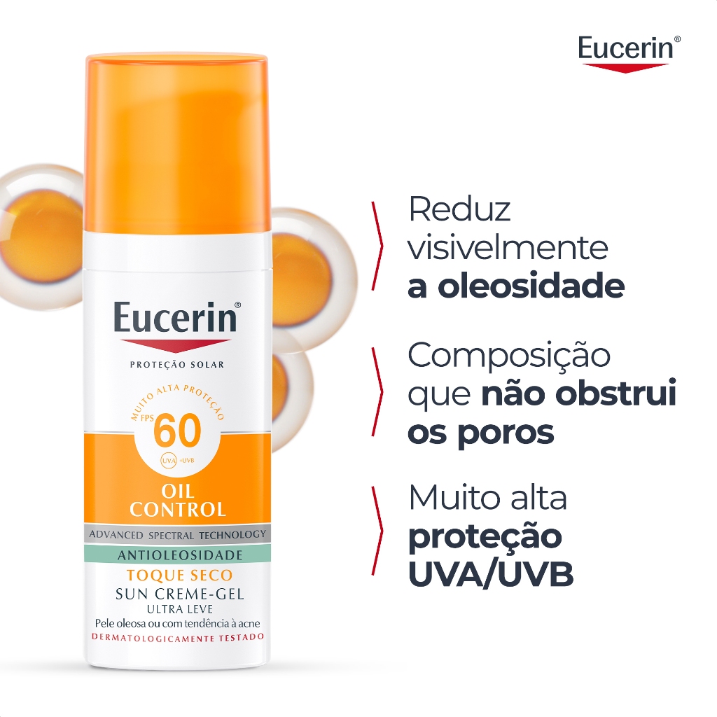 | Eucerin Sun Oil Control FPS 60 Protetor Solar Facial 50ml este produto | R$ 114,90 | 32% | 5.0/5 | 4 |