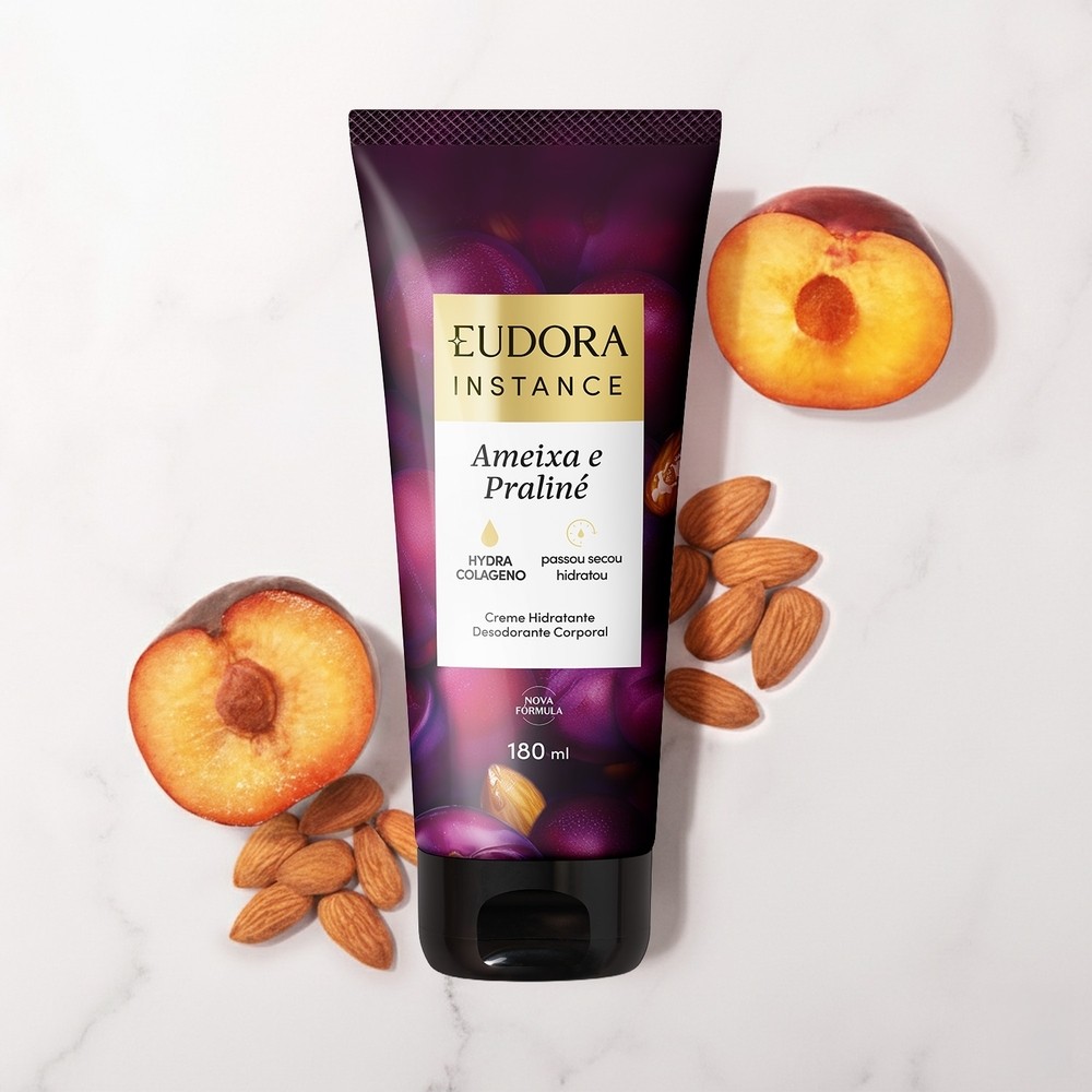 | Eudora Instance Creme Hidratante Desodorante Corporal Ameixa e Pral... este produto | R$ 30,39 | 20% | 5.0/5 | 8 |