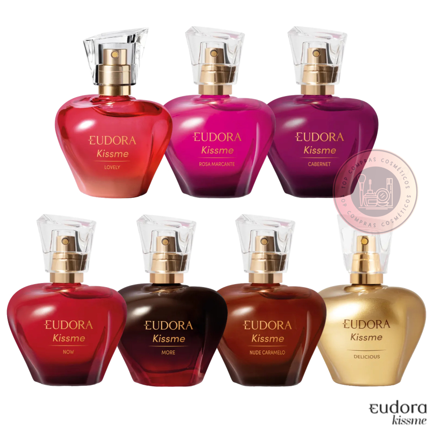 Eudora Kiss Me Colônia 50ml: Now, Rosa Marcante, Nude Caramelo, Lovely, Please e Cabernet
