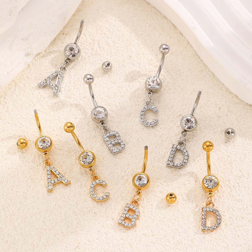 Europeu E Americano 26 Letras Em Inglês De Aço Inoxidável Umbigo Unhas Az Fivela DIY Acessórios Anel Umbilical Piercing