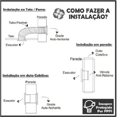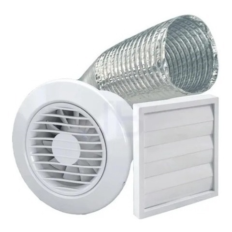Este kit contém 1 Arkit 11 - Exaustor de ambientes 100 mm 1 grade auto fechante 100 mm 1 metro de duto flexível 100 mm - Bivolt (110v-127v ou 220v) - Potencia Motor 17w - Ambientes maximo de até 6 m2 - Ideal para banheiros, closets, quartos, etc. - Retira o mau cheiro do ambiente - Evita que o ar úmido fique parado - Realiza a renovação do ar - Dificulta a proliferação de doenças respiratórias - Pode ser instalado no teto ou na parede - para tubos de 4" (100mm) - Vazão de até 110m3/h - Diâmetro do furo = 105mm