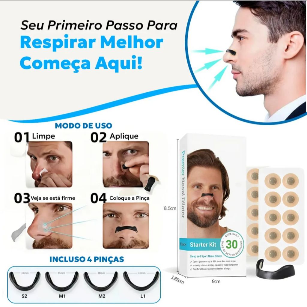 Clipes nasais confortáveis com design ergonômico, ideais para melhorar a respiração durante o sono ou atividades físicas. Ajuda a reduzir o ronco e aumentar a ventilação nasal. Produto ideal para quem busca: Reduzir o ronco durante o sono Melhorar a respiração nasal Dormir com mais conforto Respirar melhor durante atividades físicas Benefícios: Anti-Ronco Natural: Amplia as vias nasais, facilita a respiração e reduz o ronco. Super Confortável: Material macio, leve e hipoalergênico. Uso Versátil: Ideal para dormir, correr, caminhar, pedalar e muito mais. Reutilizável e Econômico: Pode ser lavado e reutilizado diversas vezes. Fácil de Usar: Basta encaixar suavemente nas narinas — não machuca, não escorrega. Conteúdo da Embalagem: 1 x Clipe Nasal Anti-Ronco S2 1 x Clipe Nasal Anti-Ronco M1 1 x Clipe Nasal Anti-Ronco M2 1 x Clipe Nasal Anti-Ronco L1 1 x Aplicador 3 x Cartelas de adesivo magnético = 30 adesivos magnético = uso de 15 dias 1 x Manual