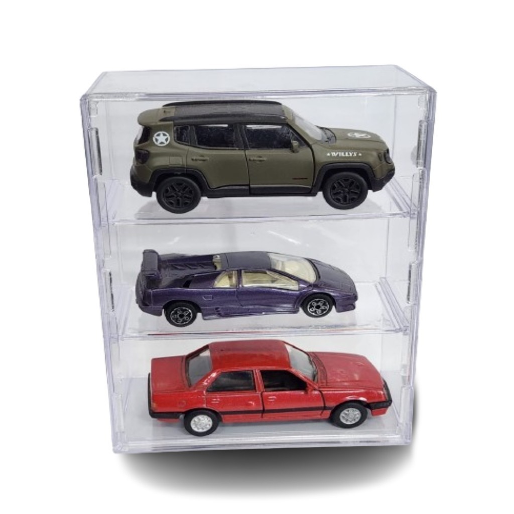 Expositor Acrílico Multiuso 3 nichos 1:64 1:43 Actions 1:18