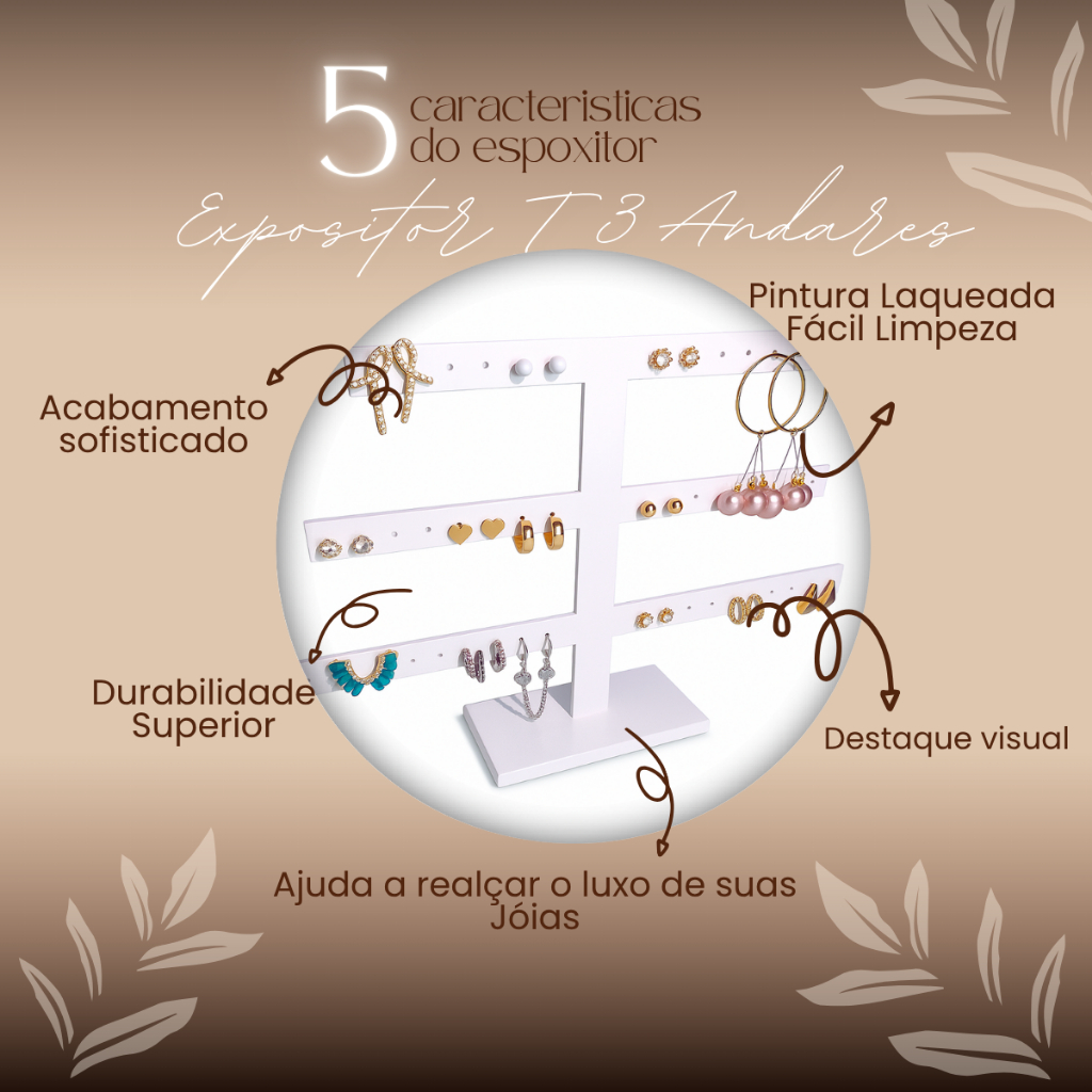 Expositor de Brinco T 3 andares Grande 48 brincos mdf decoração vitrine joias bijuteria semijoias