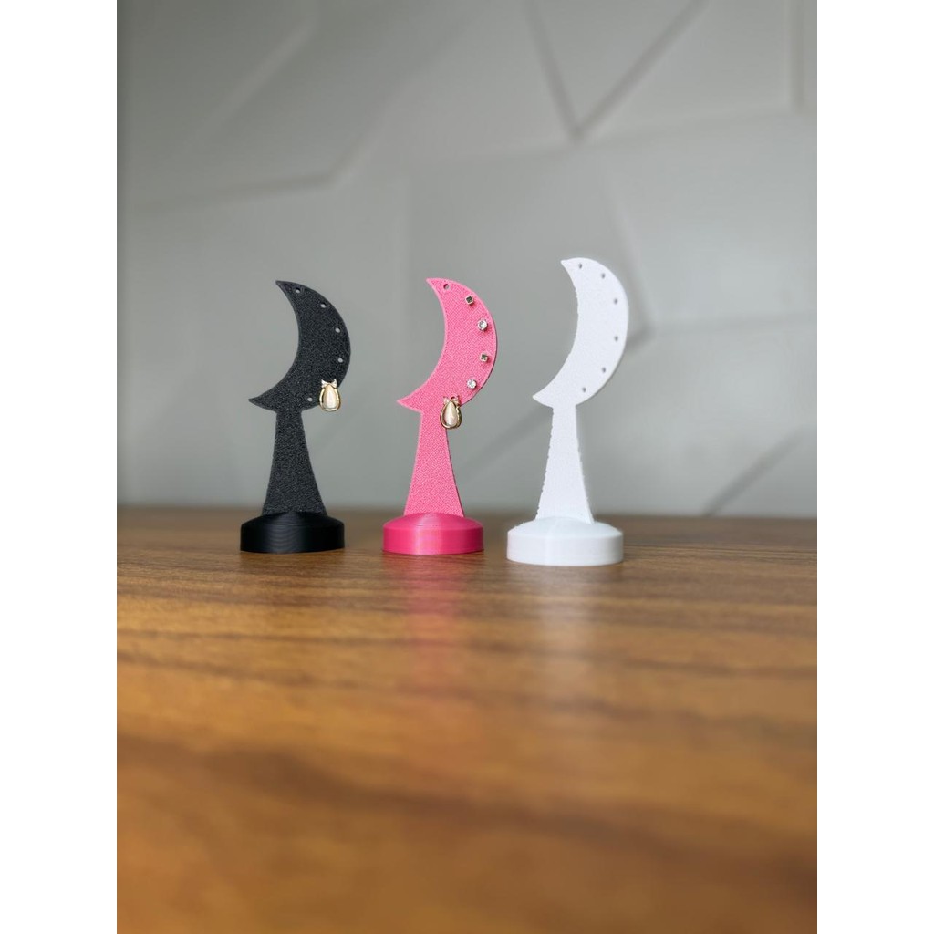 🌙 Expositor de Brincos Lunar – Omorfiá 🌙 Realce seus acessórios com um toque celestial! O Expositor de Brincos Lunar é ideal para quem busca organizar e apresentar brincos com elegância e originalidade. Seu design em forma de lua crescente confere um charme moderno e artístico, perfeito para valorizar joias delicadas em qualquer ambiente. 🪄 Características do Produto: Design Celestial e Moderno: O formato de lua crescente adiciona um ar místico e sofisticado à decoração, destacando cada par de brincos com estilo. Tamanho Ideal: Com dimensões de 12 cm de altura, 4,5 cm de largura e 4,5 cm de comprimento, é compacto e elegante, cabendo perfeitamente em penteadeiras, vitrines ou prateleiras. Material Leve e Resistente: Fabricado com material de alta qualidade e pesando apenas 15g, é durável e fácil de transportar. Cores Variadas: Disponível em preto, rosa e branco, com opções decoradas com pedrarias para um toque extra de brilho. Organização com Estilo: Perfeito para exibir e organizar brincos de maneira charmosa e funcional. ✨ Eleve a apresentação das suas joias com o Expositor de Brincos Lunar Omorfiá – praticidade e beleza em um só produto! 📦 Conteúdo da Embalagem: 01 Expositor de Brincos Lunar Dimensões Suporte de Brincos: 12cm Altura x 4,5cm Largura x 4,5cm Comprimento Material PLA 100% biodegradável e não tóxico, relevante ao meio ambiente, derivado do amido de milho dentre outros amidos renováveis. 🌎 As cores podem variar dependendo do lote do material utilizado O resultado final são peças exclusivas e extremamente resistentes. Atenção Nossos produtos são produzidos sob demanda, e o prazo começa a contar após confirmação de pagamento; Se atente ao prazo tanto de produção, quanto de postagem para o seu cep, caso sua compra for presente; Informações de Envio: Todos nossos envios são feitos via correio, a seleção do tipo de envio do correio é feita direto no carrinho de compra. Informações complementares: Esse produto foi feito através de uma impressora 3D com PLA, um polímero biodegradável que não agride o meio ambiente e finalizados a mão, podem sofrer alteração caso sejam expostas a altas temperatura ou diretamente ao sol por longo períodos. As peças podem ser lavadas com sabonetes, detergentes, ou produtos similares, caso não sejam pintadas. Evitar contato com cremes, pomadas ou produtos similares. Não garantimos quebra, arranhões, desgaste naturais pelo uso ou manchas por alguma das substâncias citadas acima. As peças são resistentes a água, caso não sejam pintadas. Para limpeza de peças pintadas utilizar um pano seco. Dica: Assim que receber seu pedido, não abra a embalagem com ferramentas pontiagudas ou cortantes de forma brusca para evitar de arranhar e danificar seu produto.
