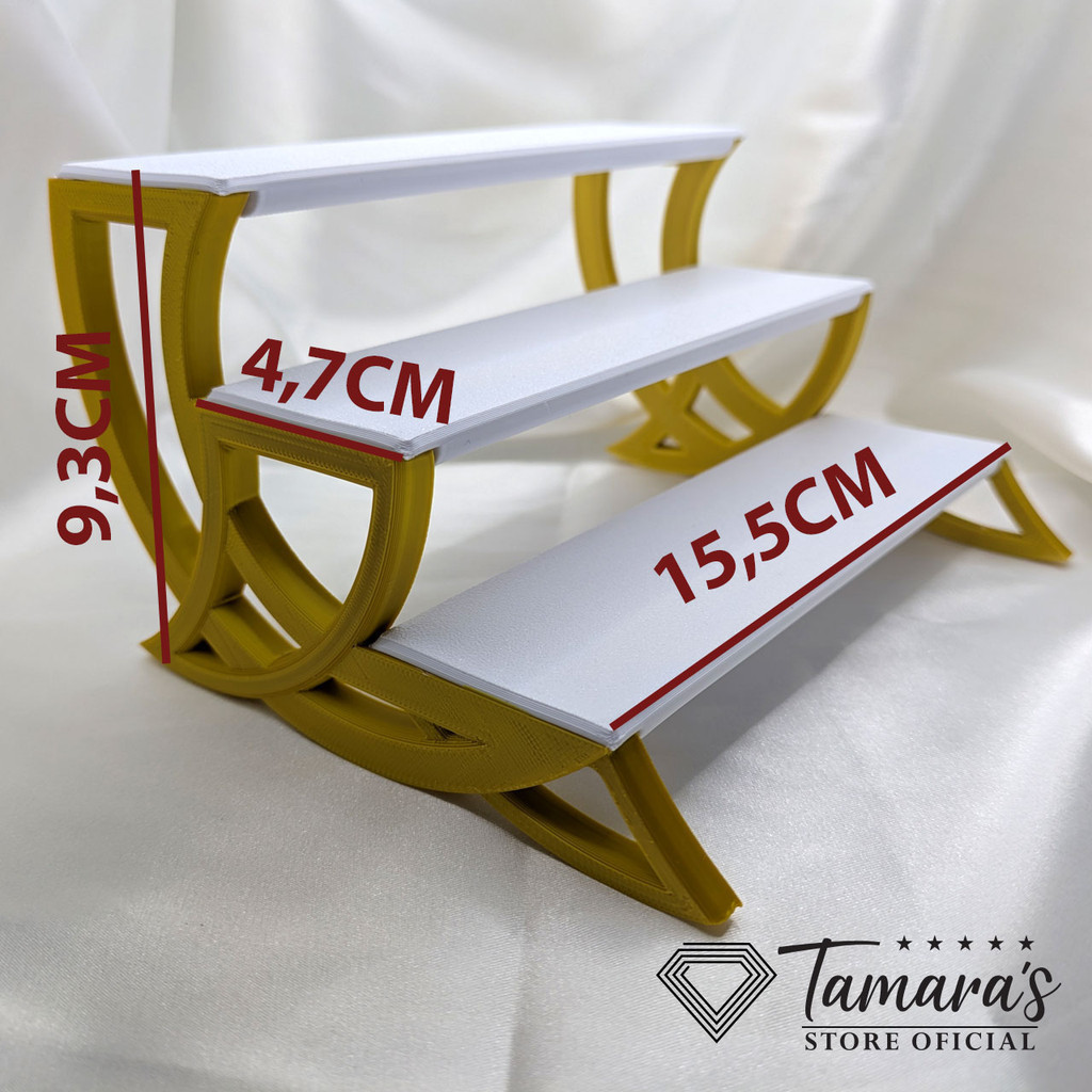 *** IMPORTANTE: NÃO ACOMPANHA OS BRINCOS E ACESSÓRIOS - SOMENTE DEMONSTRAÇÃO NAS FOTOS *** ✨ Expositor Escadinha para Joias - Destaque Seus Acessórios com Elegância! ✨ Mantenha seus anéis, brincos e colares organizados e bem apresentados com este Expositor Escadinha. Com um design sofisticado em branco e dourado, ele é perfeito tanto para uso pessoal quanto para vitrines e exposições. Seu formato em degraus permite melhor visualização das peças, facilitando a escolha e valorizando seus acessórios. 💖 Destaques do Produto: ⭐ Design Moderno e Funcional: Exiba suas joias de maneira organizada e elegante. 💛 Combinação Branco e Dourado: Sofisticação para qualquer ambiente. 📿 Versátil: Ideal para anéis, brincos, colares e pulseiras. 🏬 Perfeito para Lojas e Feiras: Exposição prática e atraente. 📏 Especificações: Material: Estrutura resistente e leve. Cor: Branco com detalhes dourados. Formato: Escadinha para melhor visualização dos acessórios. 🌟 Garanta já o seu expositor e organize suas joias com muito mais estilo! 🌟 Dimensões: Altura: 9,3 cm Comprimento: 11,8cm Largura: 15,5 cm Estrutura: 3 Degraus. 2 Suportes ornamentais. 🔸 Seu produto pode apresentar linhas, marcas de suporte ou texturas superficiais, características do processo de impressão 3D. ✨ Por que escolher este mini expositor? É a solução perfeita para organizar suas joias com elegância e praticidade, além de ser sustentável e único, com um design exclusivo e impresso em 3D. 🌟 Adquira já e mantenha suas joias sempre organizadas e acessíveis! 🌟