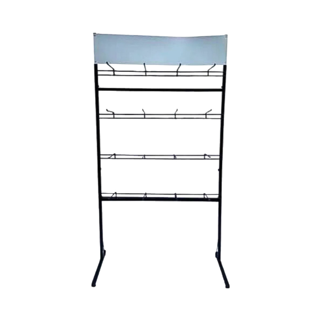 Organize e valorize seus produtos com o Display Expositor de 16 ganchos, projetado especialmente para chinelos e sandálias. Com design encartelado e estrutura robusta em ferro, recebe pintura eletrostática epóxi que garante alta resistência, acabamento superior e longa vida útil, mesmo em uso intenso no dia a dia da loja. O expositor possui 6 gancheiras com 4 ganchos cada, oferecendo ótima capacidade de organização e visualização dos itens. Suas medidas são ideais para destacar os produtos sem ocupar muito espaço: 170 cm de altura, 96 cm de largura e ganchos de 20 cm de profundidade. Além disso, acompanha chapa exclusiva para aplicação da logomarca (20 x 96 cm), permitindo personalizar a identidade da sua loja e fortalecer sua marca. Disponível nas cores branco ou preto, combina facilmente com qualquer ambiente comercial. Uma solução prática, resistente e funcional para quem busca exposição profissional de produtos.